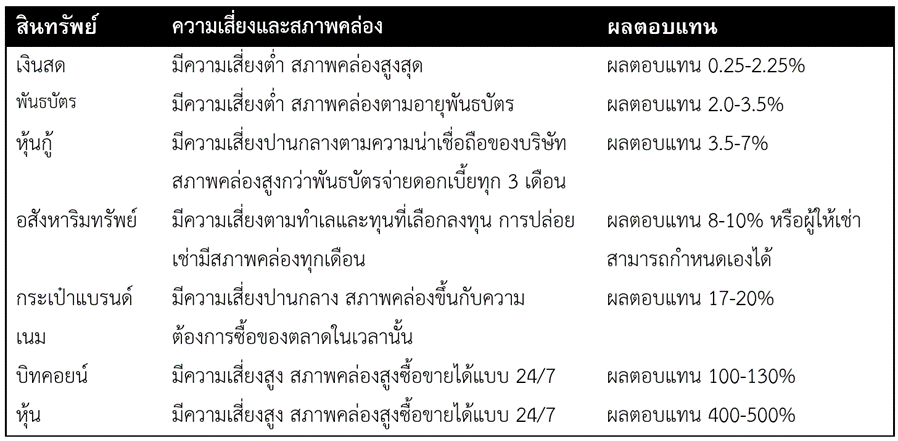 - ผลตอบแทนของพันธบัตรรัฐบาลหรือพันธบัตรออมทรัพย์ประมาณ 0-3.5%