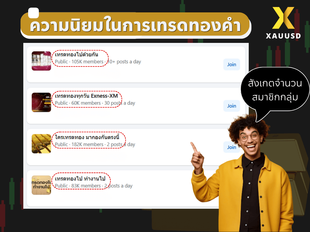 จำนวนสมาชิกกลุ่มเทรดทองคำใน Facebook ของไทย มีจำนวนสมาชิกไม่ต่ำกว่า 50K แสดงถึงความนิยมในการเทรดทองคำของคนไทย
